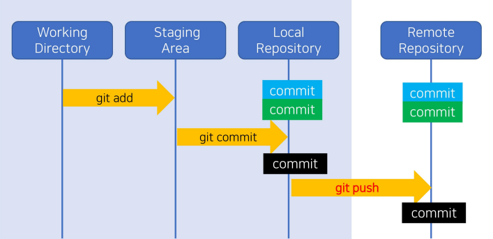 - "커밋하다" - 변경점을 로컬 저장소로 저장하는 과정