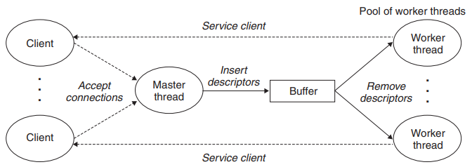 - 각 Worker Thread는 Buffer에서 Connected Descriptor를 제거할 수 있을 때까지 기다린 다음