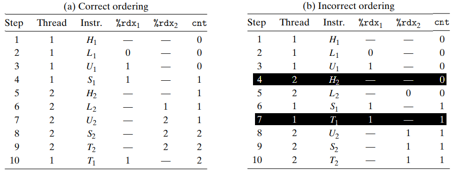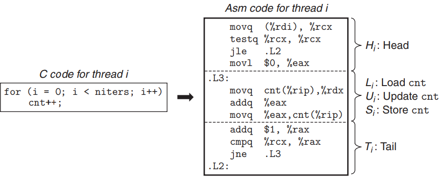 이 Assembly 코드에서 cnt++은 Load, Update, Store 과정을 거쳐야 완료된다. 즉, 3개의 명령어로 쪼갤 수 있다.