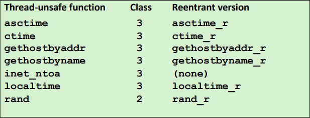 - Class 4: thread-unsafe 함수라 불리는 함수