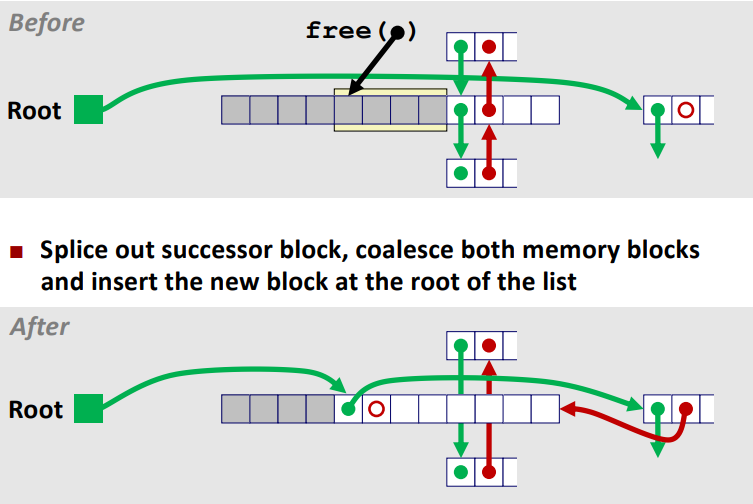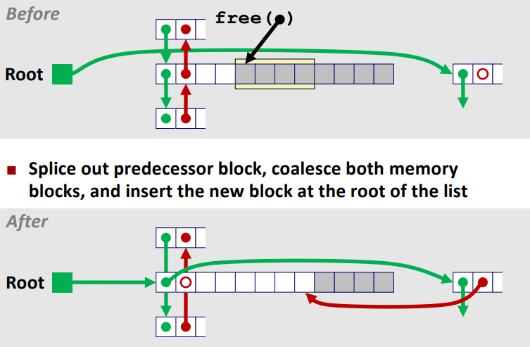 - free list block이 항상 Address-order로 정렬되도록 free block을 삽입한다.