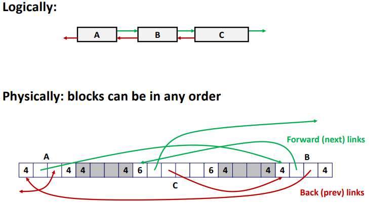 - 다음 free block이 어디에 있든 바로 탐색할 수 있다.