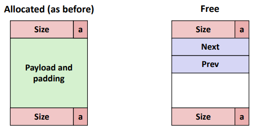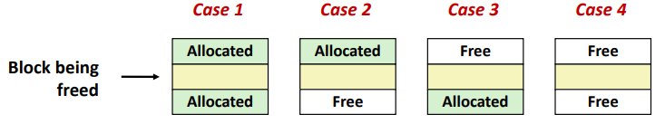 - free 할 때 관심 있는 것은 이전 Block이 Free인지 Allocated인지 여부이다.