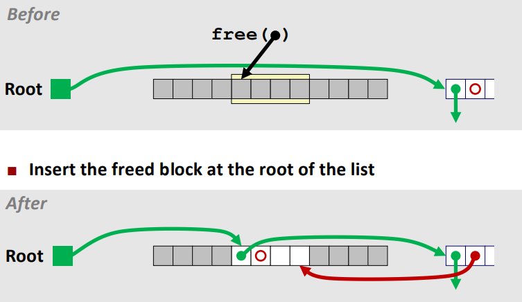 - free list의 시작하는 곳에 freed block을 삽입한다.