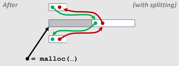두 번째 block에 어떤 block이 allocation 되었다면 split 하고 남은 block에 각 pointer들이 앞 뒤로 연결된다.