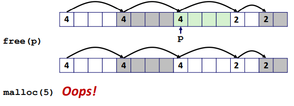 - Immediate coalescing: free가 호출될 때마다 coalesce.