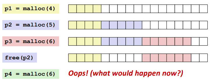 Internal Fragmentation은 이전의 어떤 Request가 왔는지 Pattern에 따라서 생길 수 있다.