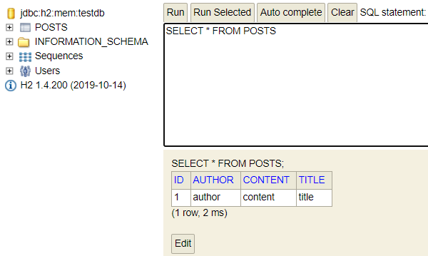 insert into posts(author, content, title) values ('author', 'content', 'title');