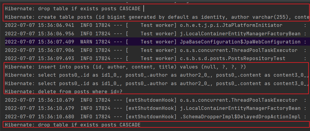 PostsRepositoryTest 클래스에서 테스트 메서드 추가