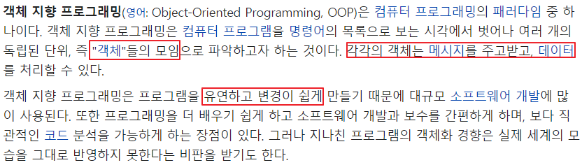 - 자바 언어의 가장 큰 특징 - 객체 지향 언어