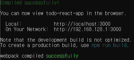 todo-react-app은 3000포트에서 실행되고 있고 localhost:3000에 접속하면 애플리케이션을 확인할 수 있다.