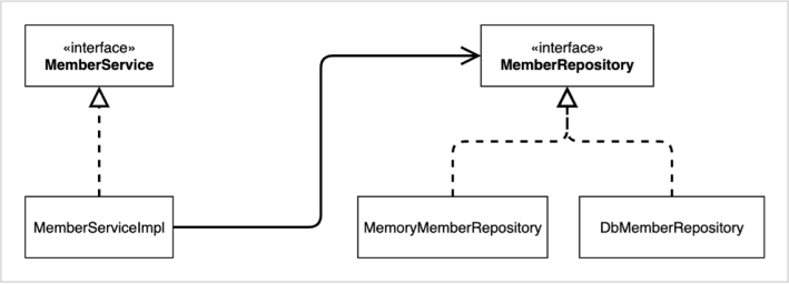 MemberRepository의 구현체로 MemoryMemberRepository, DbMemberRepository를 구현할 수 있다.