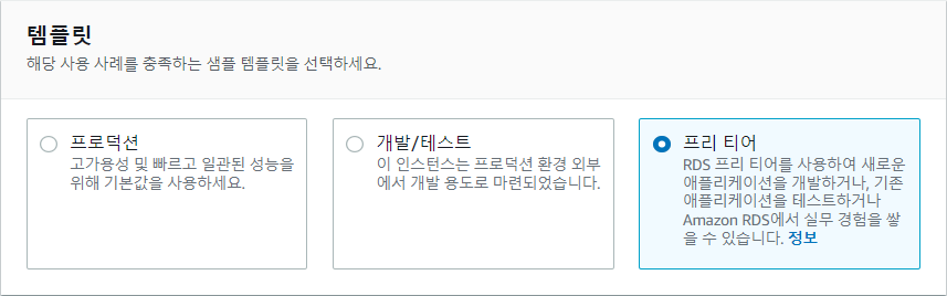 - 프리 티어를 사용하고 있으니 당연히 프리 티어를 선택한다.