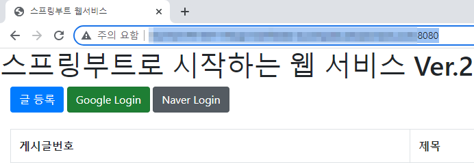 현재 상태에서는 해당 서비스에 EC2의 도메인을 등록하지 않았기 때문에 구글과 네이버 로그인이 작동하지 않는다.