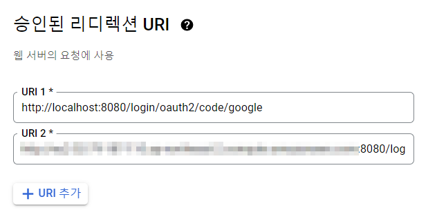 승인된 리디렉션 URI에 EC2 퍼블릭 DNS 주소에 :8080/login/oauth2/code/google 주소를 추가하여 등록한다.