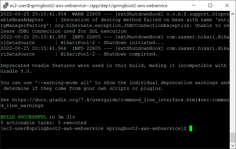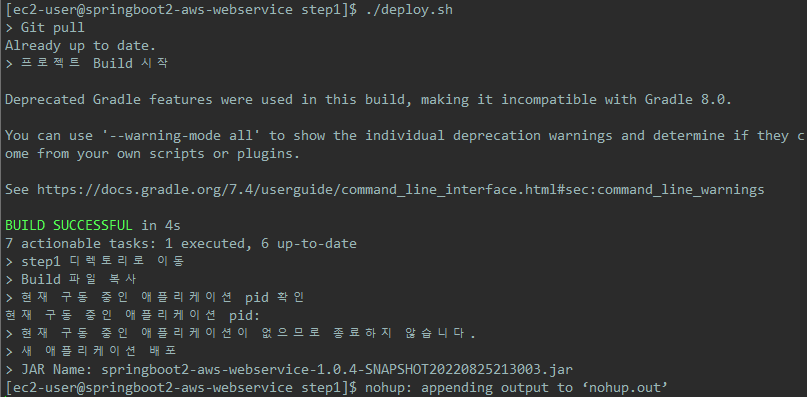 이제 deploy.sh를 실행하여 nohup.out 하단에 다음과 같은 로그가 보인다면 성공적으로 수행된 것이다.