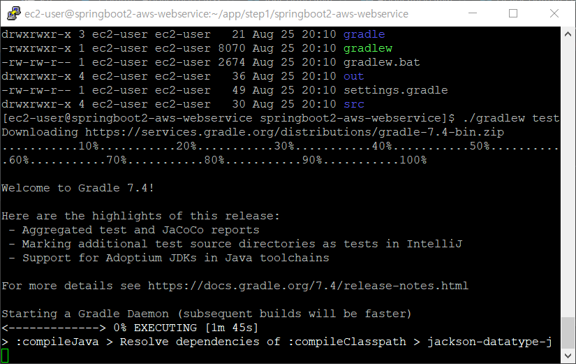 - 프로젝트 내부의 gradlew로 build를 수행한다.