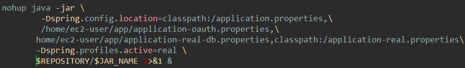 /home/ec2-user/app/application-oauth.properties $REPOSITORY/$JAR_NAME 2>&1 &