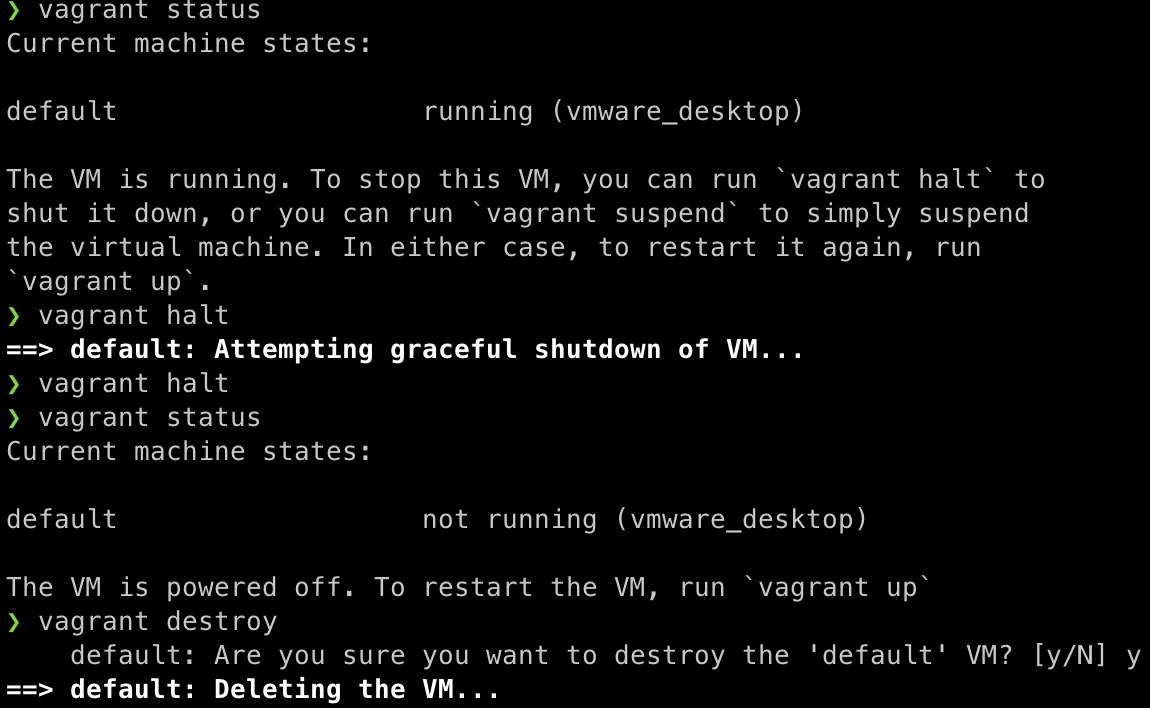 vagrant status # 현재 디렉토리에 있는 가상 머신 상태 확인