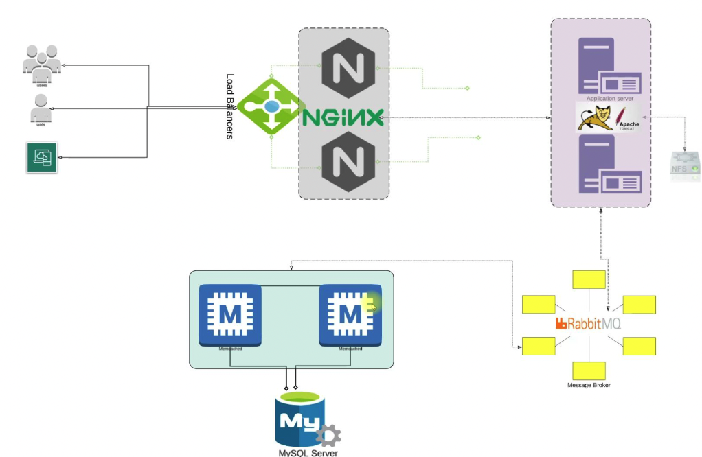 - 그러나 MySQL DB로 이동하기 전에 요청이 memcached로 이동한다. memcached는 데이터베이스 캐싱으로 SQL Server와 연결된다. My SQL Server는 DB에 첫 request가 올 때 사용자 정보를 저장한다. 그 다음 SQL Server에서 Tomcat으로 전송된 다음 memcached 서버로 캐시된다.
