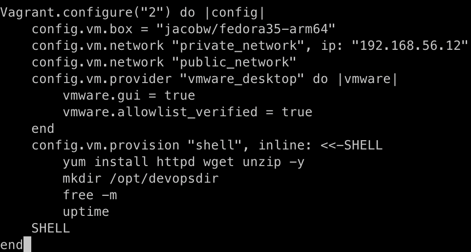 - vagrantfile의 provisioning 섹션에 모든 명령어를 입력하여 이를 대신할 수 있다.