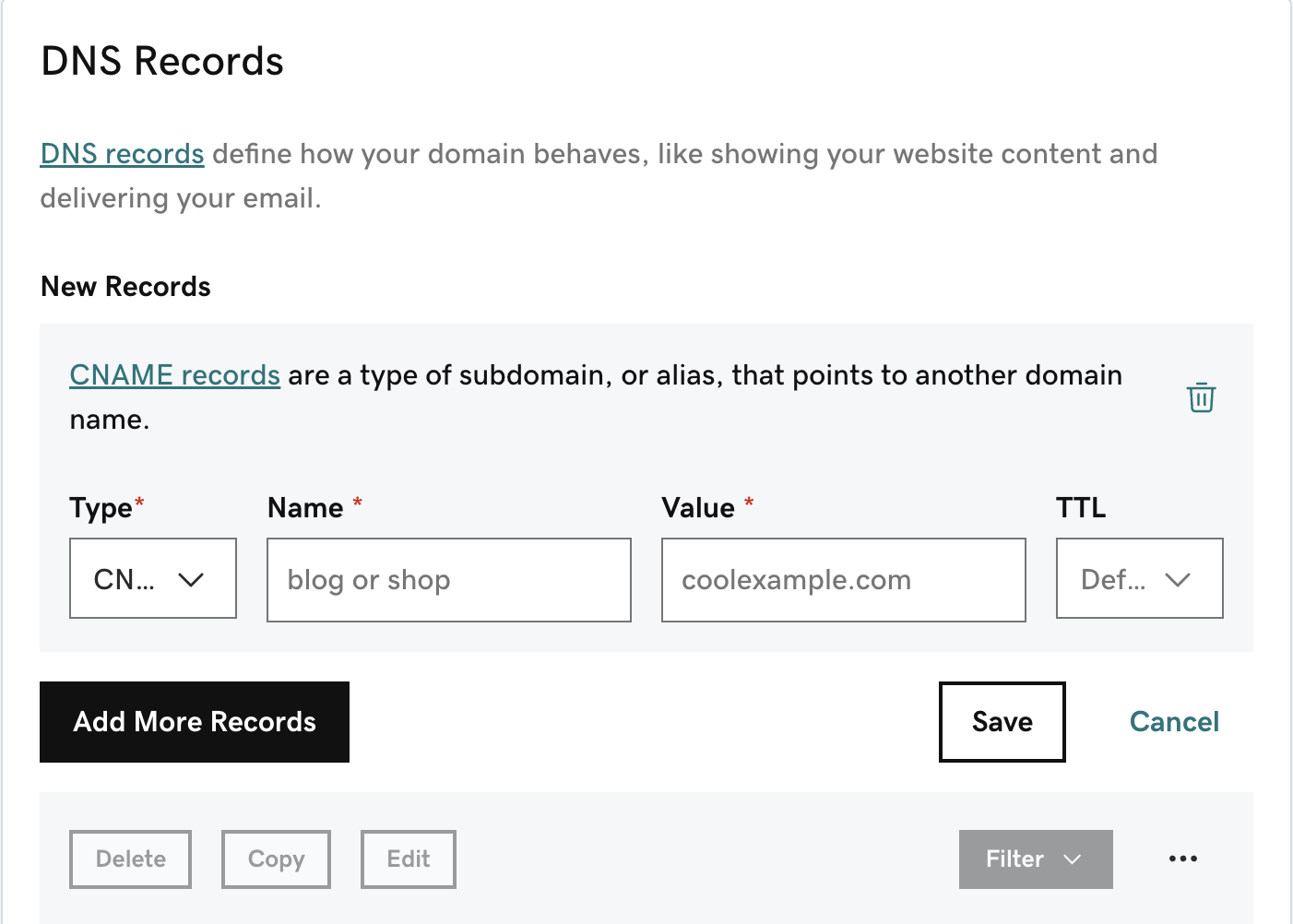 7. 도메인을 구매한 곳에서 DNS 레코드를 추가해야한다.