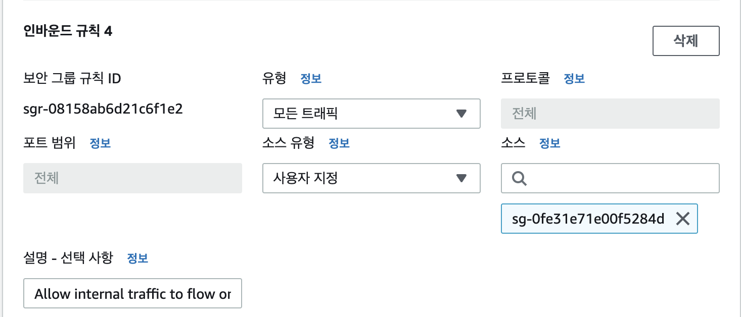 백엔드 서비스들이 tomcat에 접근할 때 위 포트를 사용하므로 인바운드 규칙에 추가해 준다.