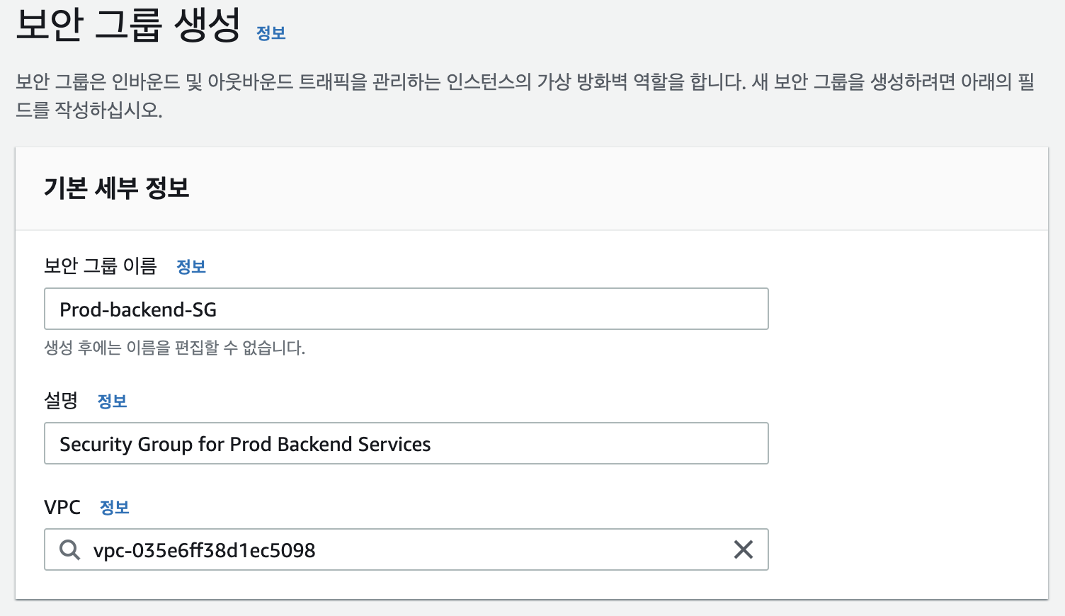 - 보안 그룹 생성