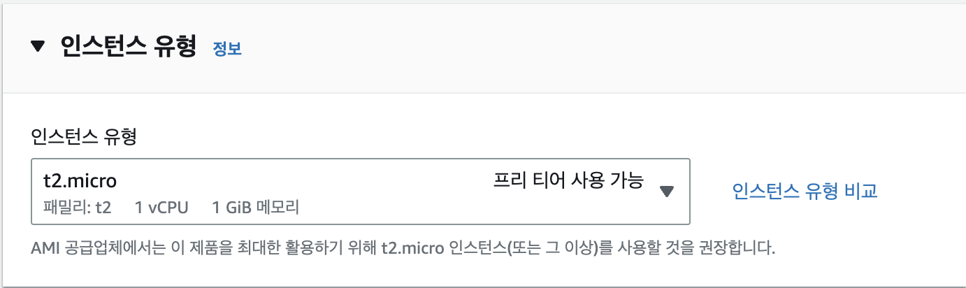 - free tier를 사용하고 있어서 t2.micro를 사용한다.