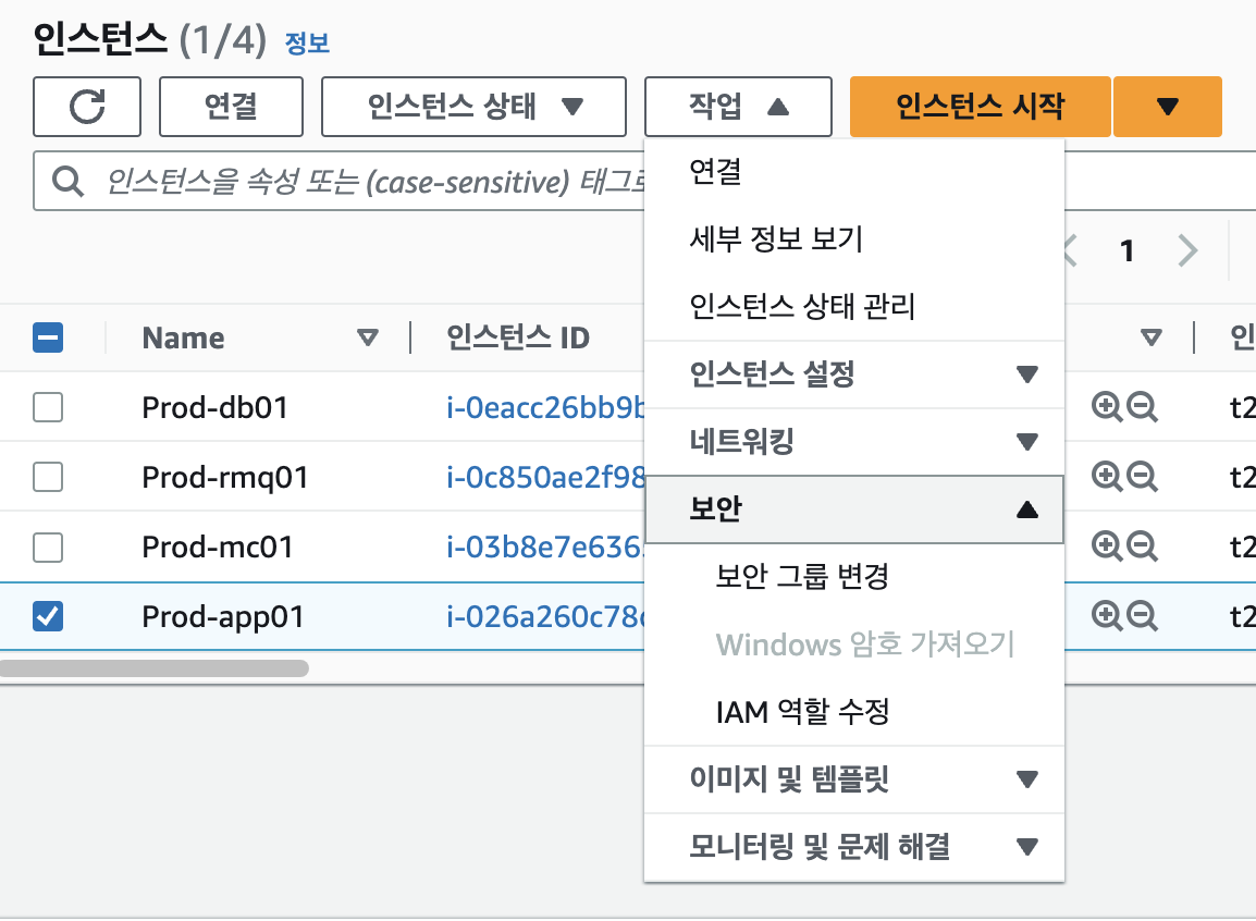 각 인스턴스에 대한 보안 그룹들을 먼저 설정한다.
