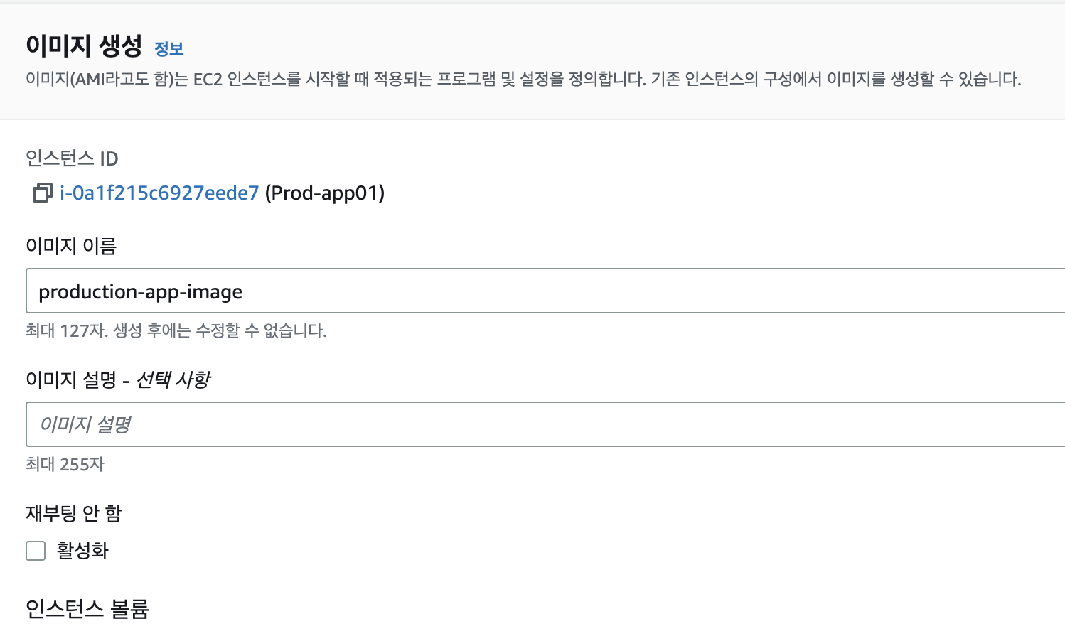 - 특이 사항이 없는 한 이미지 이름만 작성하고 생성한다.