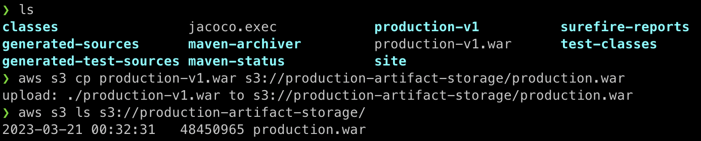 - build 된 war 파일을 S3에 올리고 awscli로 다운로드한다.