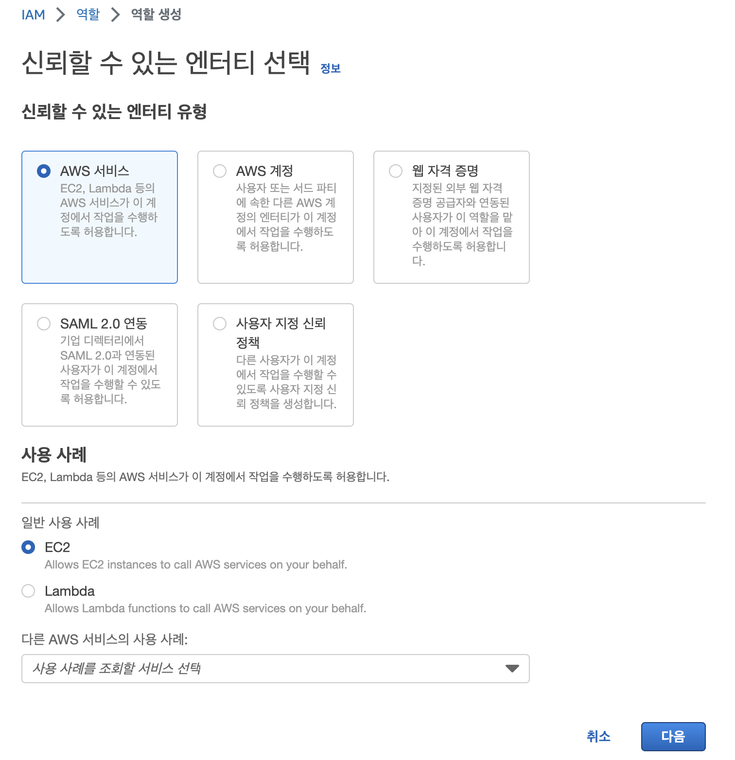 - IAM 사용자 선택