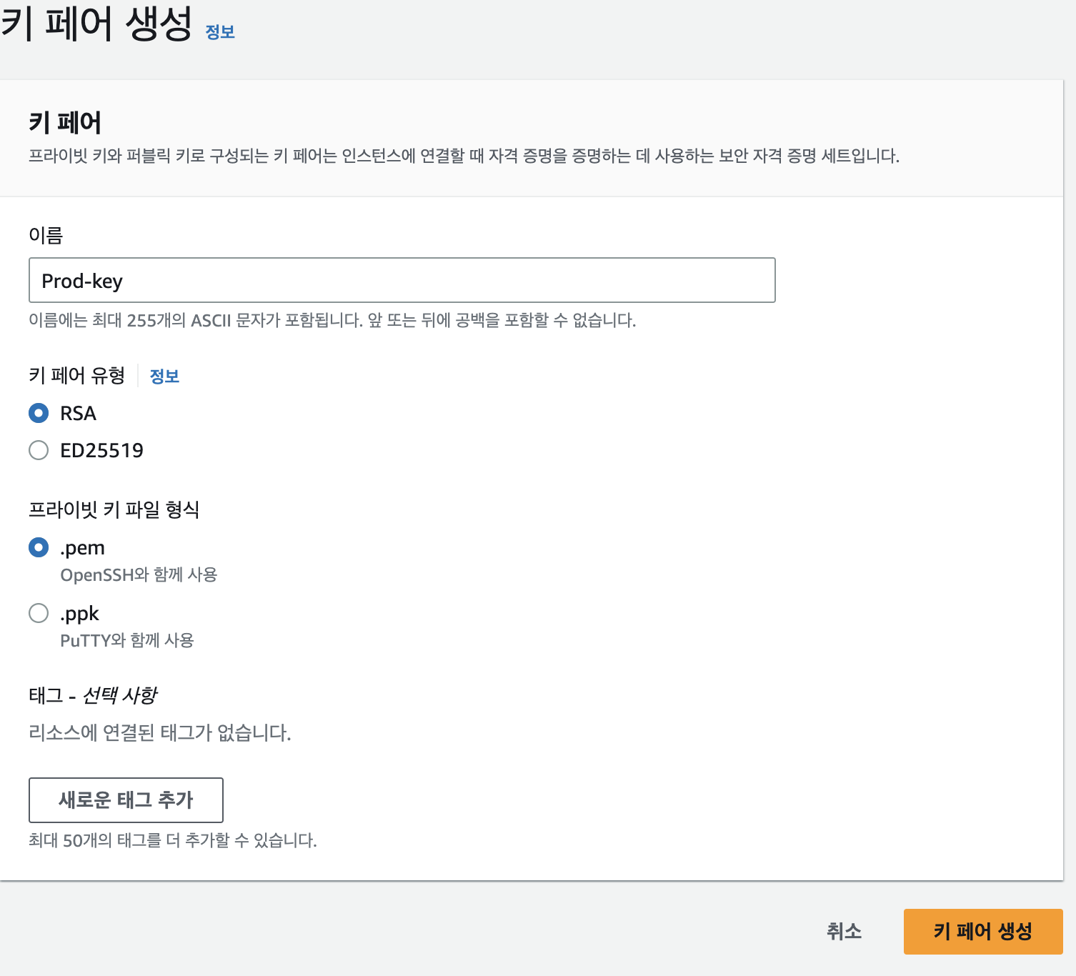 - Key Pair 생성