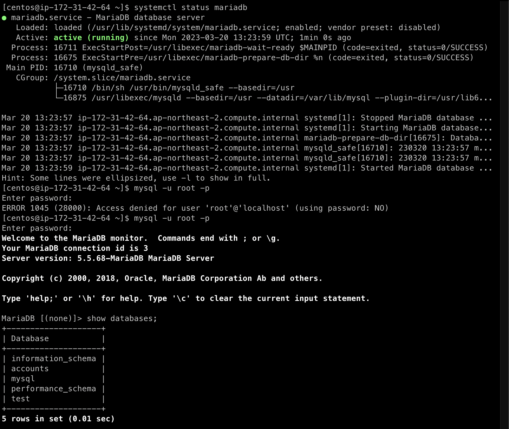 - 정상적으로 Mysql 인스턴스가 bash script에 따라 Provisioning 된 것을 확인했다.