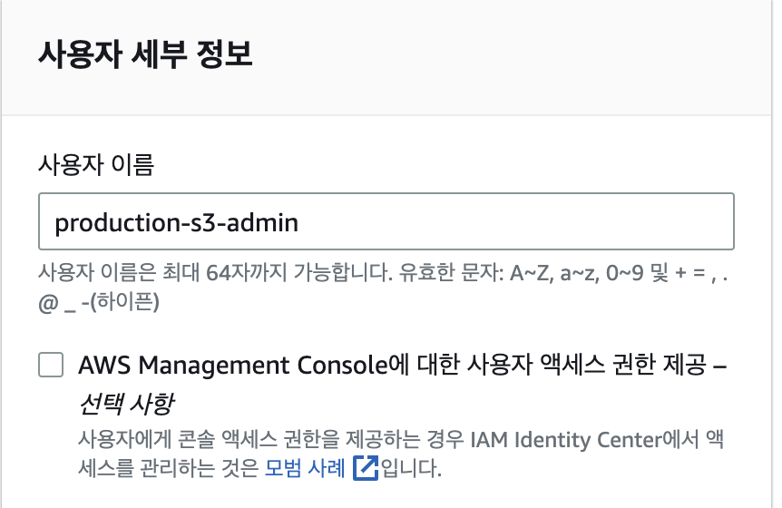 S3만 관리하는 IAM 사용자 추가