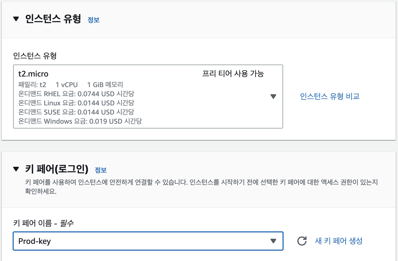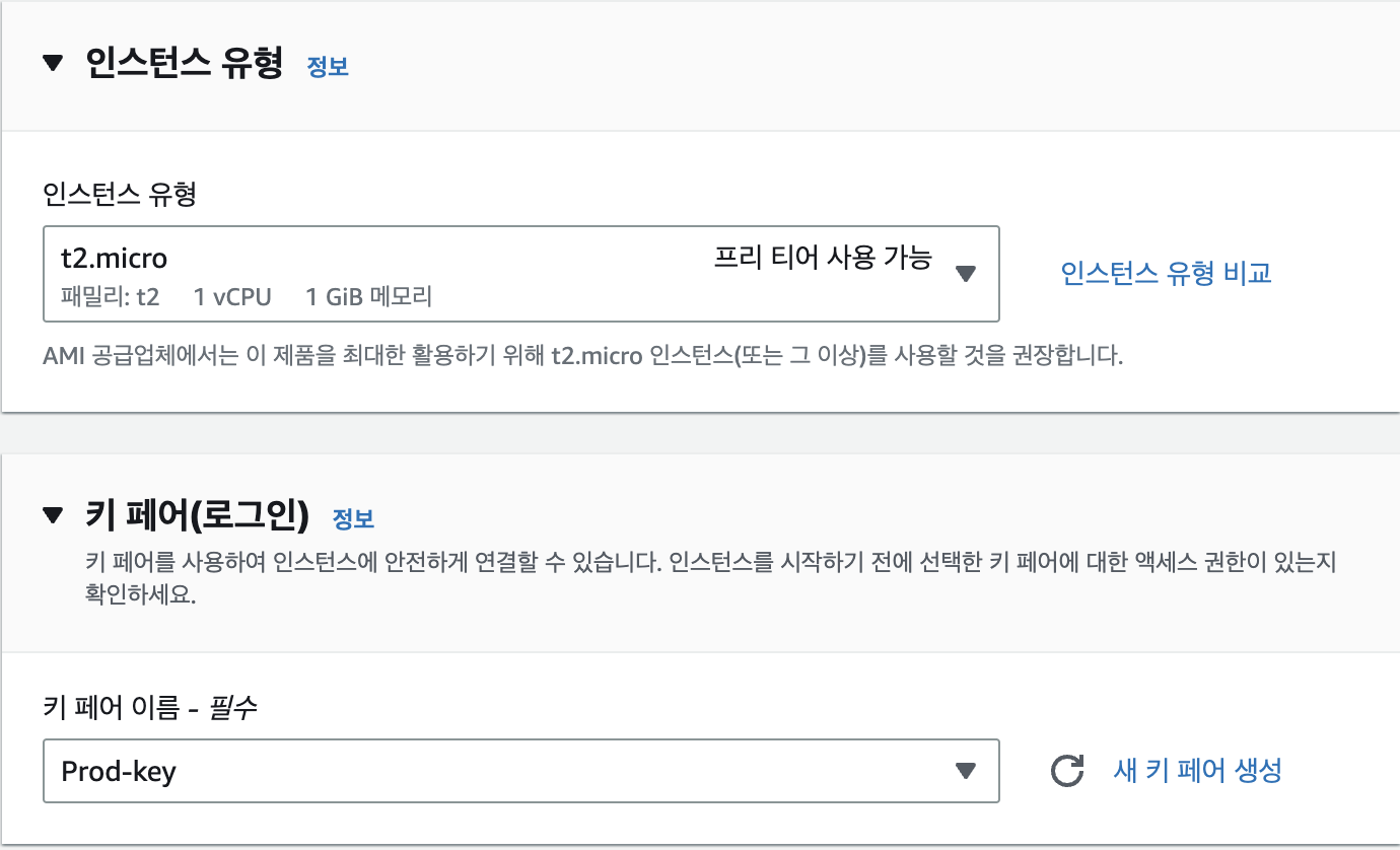 - free tier를 사용하고 있어서 t2.micro를 사용한다.