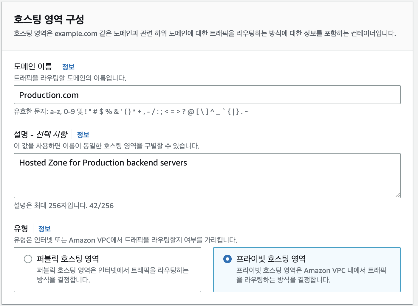 Route 53에서 호스팅 영역 생성