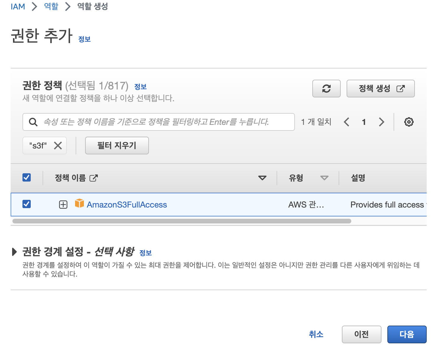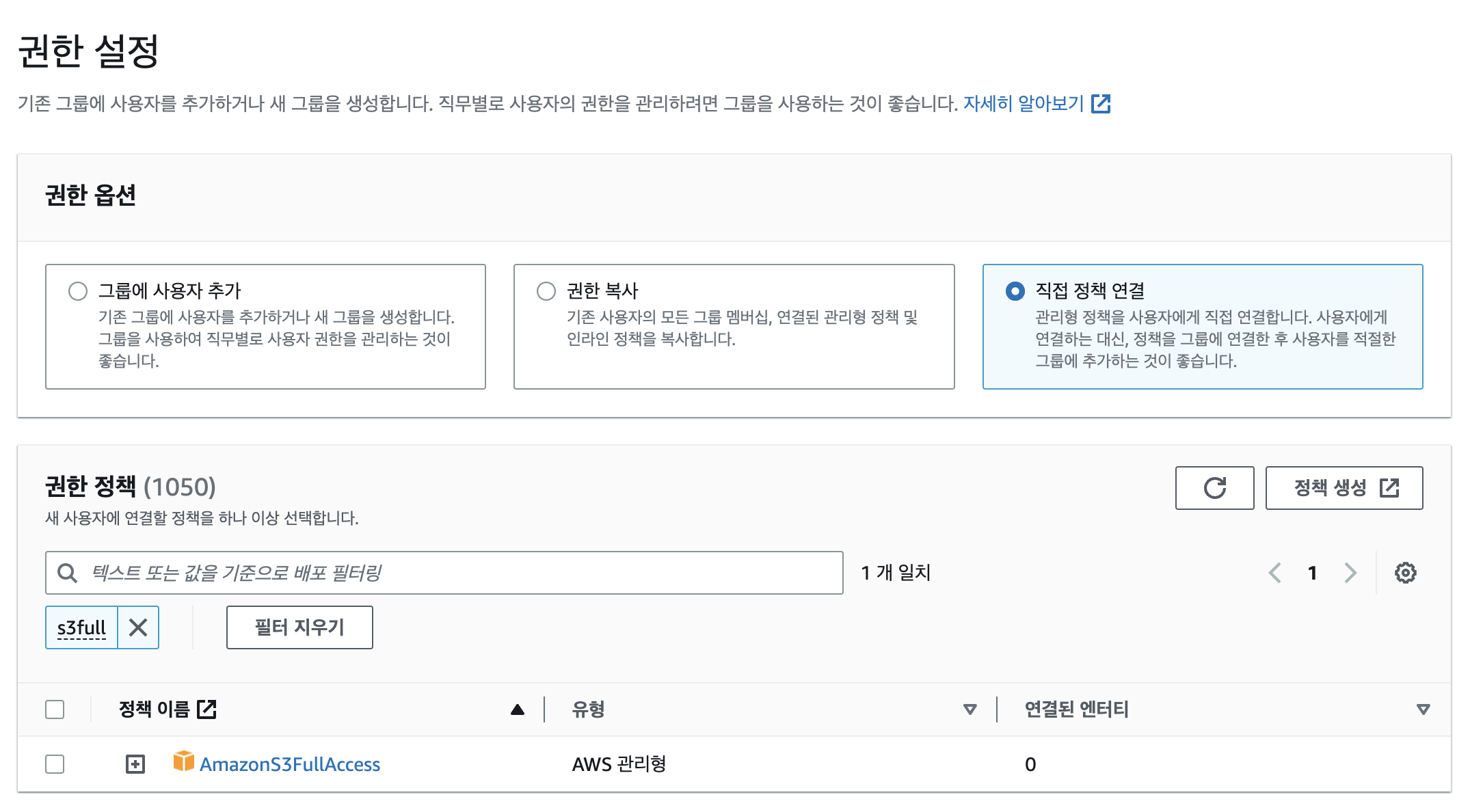 - IAM 사용자에게 S3 권한 부여