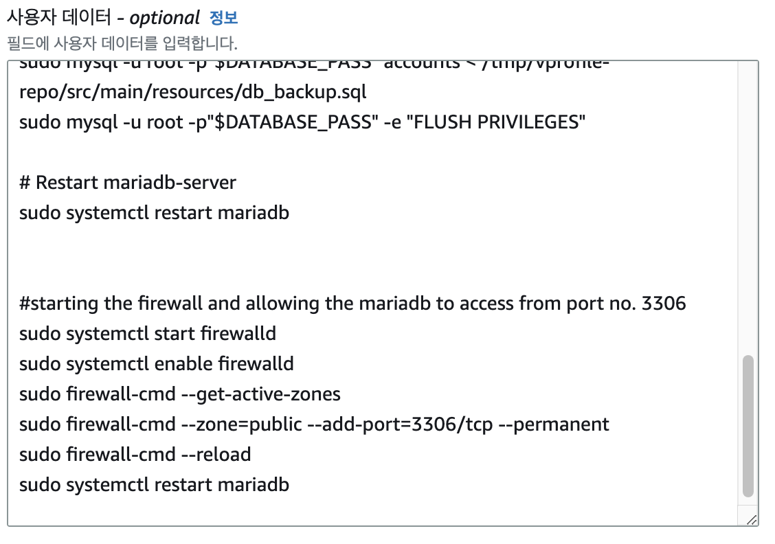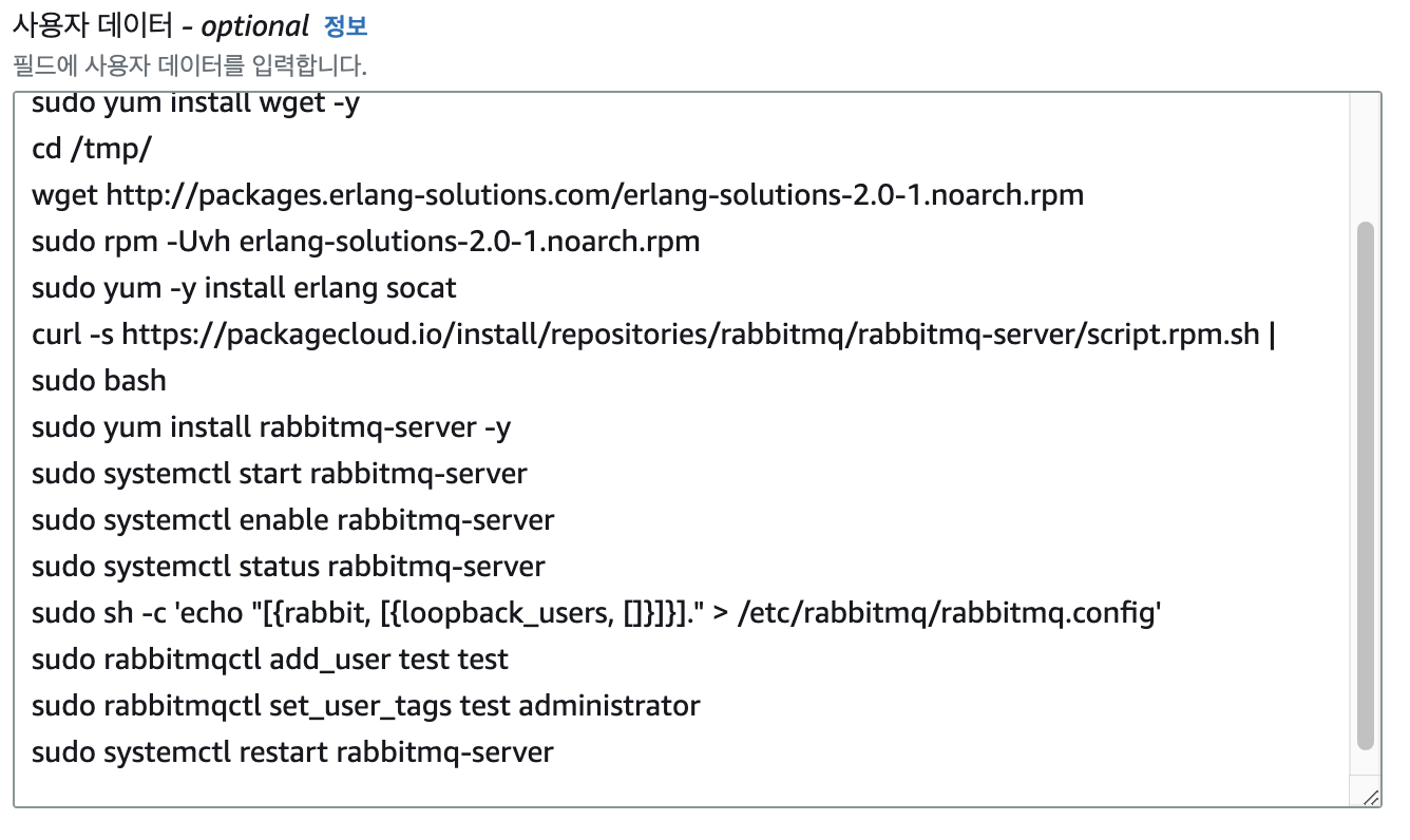 - 가상 머신에서 bash 파일을 이용하여 Provisioning 했듯이, EC2 인스턴스가 생성될 때 각 서비스들을 생성하기 위해 사용자 데이터에 각 서비스를 위한 명령어들을 작성하여 생성한다.