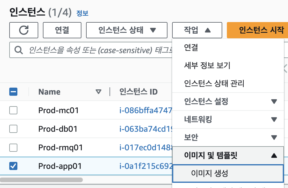 먼저, tomcat 인스턴스의 AMI를 만들어야 한다.