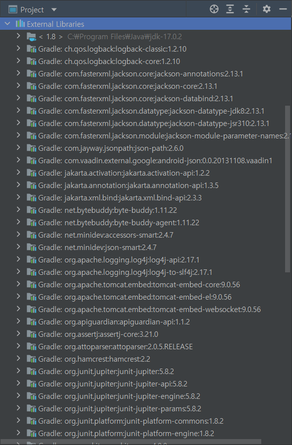 gradle에서 dependencies를 보면 spring-boot-starter-tomcat이 있는데