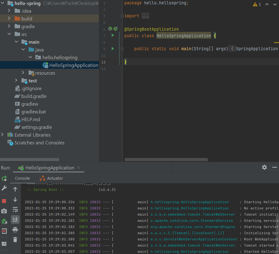 위와 같은 화면이 나타나면 프로젝트 환경 설정에 성공한 것이다.