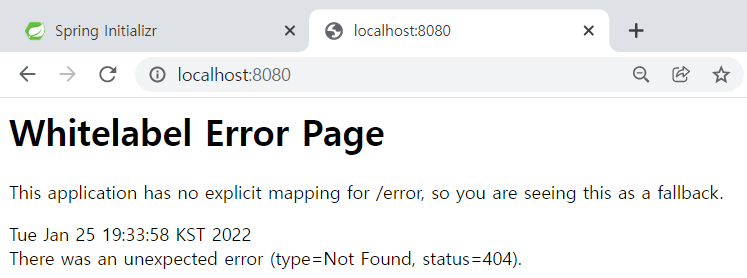 main 메서드를 중지하면 위 페이지는 에러 페이지로 나타난다.