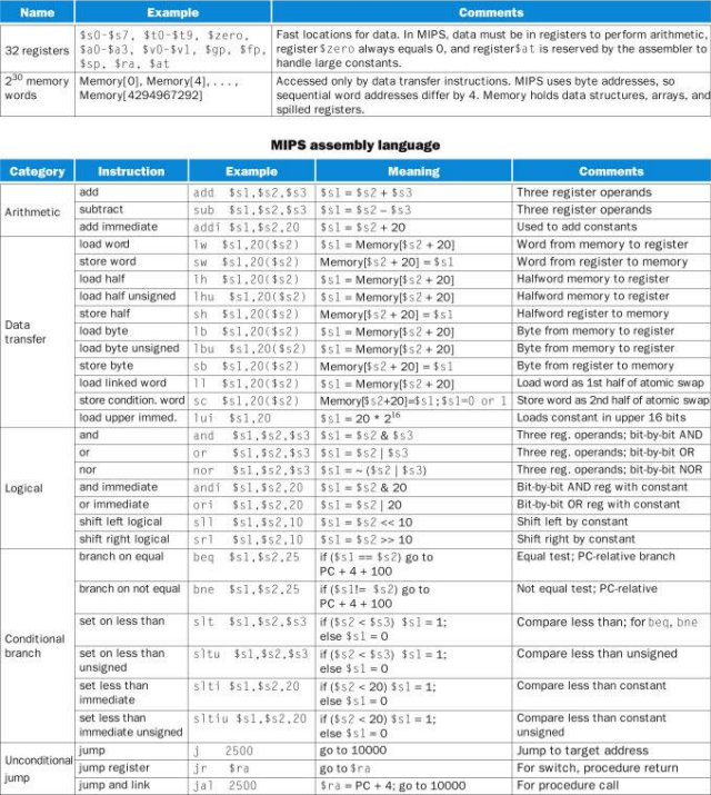 MIP 명령어는 한 번에 하나의 연산만을 하기 때문에 컴파일러는 이 문장을 여러 개의 어셈블리 명령어로 나누어야 한다. 첫 MIP 명령어는 g와 h의 합을 구하고 결과를 어딘가에 저장해야 한다. 컴파일러는 t0라는 임시 변수를 생성한다.