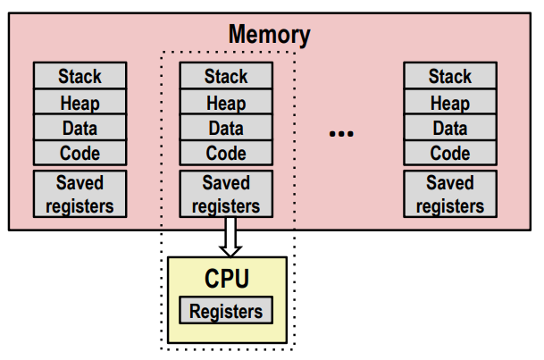 하지만, 실제로 프로세스는 CPU는 공유하고 있다.