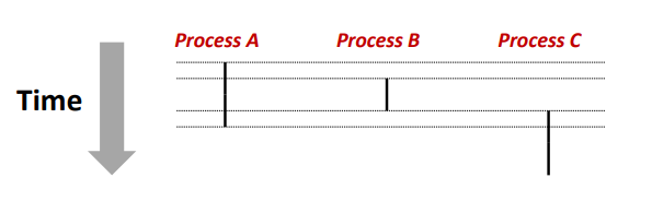 각 프로세스에 해당되는 Time quantum이 10ms라고 하면, 프로세스 A가 실행되고 있을 때 10ms가 지나면 os의 스케줄러에 의해 스케줄링되어 다음 프로세스로 context switch가 발생한다. 이런 방식으로 os가 프로세스를 time sharing 하는 것으로 프로세스가 CPU를 독점하고 있는 것이 아니다.