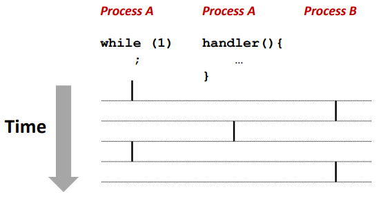 - asynchronous interrupt에 대한 응답으로 하드웨어 exception 핸들러가 호출되는 것과 유사하다.