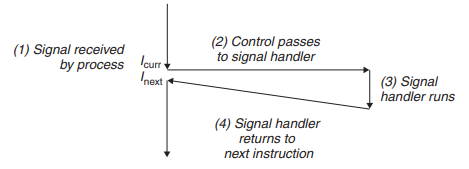대상 프로세스는 커널에 의해 signal 전달을 어떤 방식으로 반응하도록 강제되었을 때 signal을 받는다.